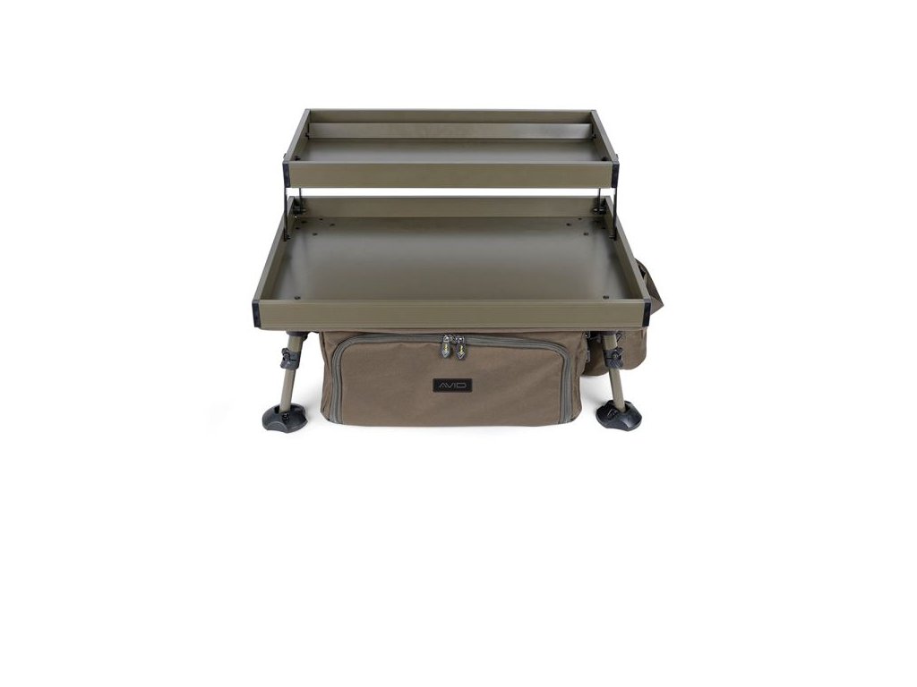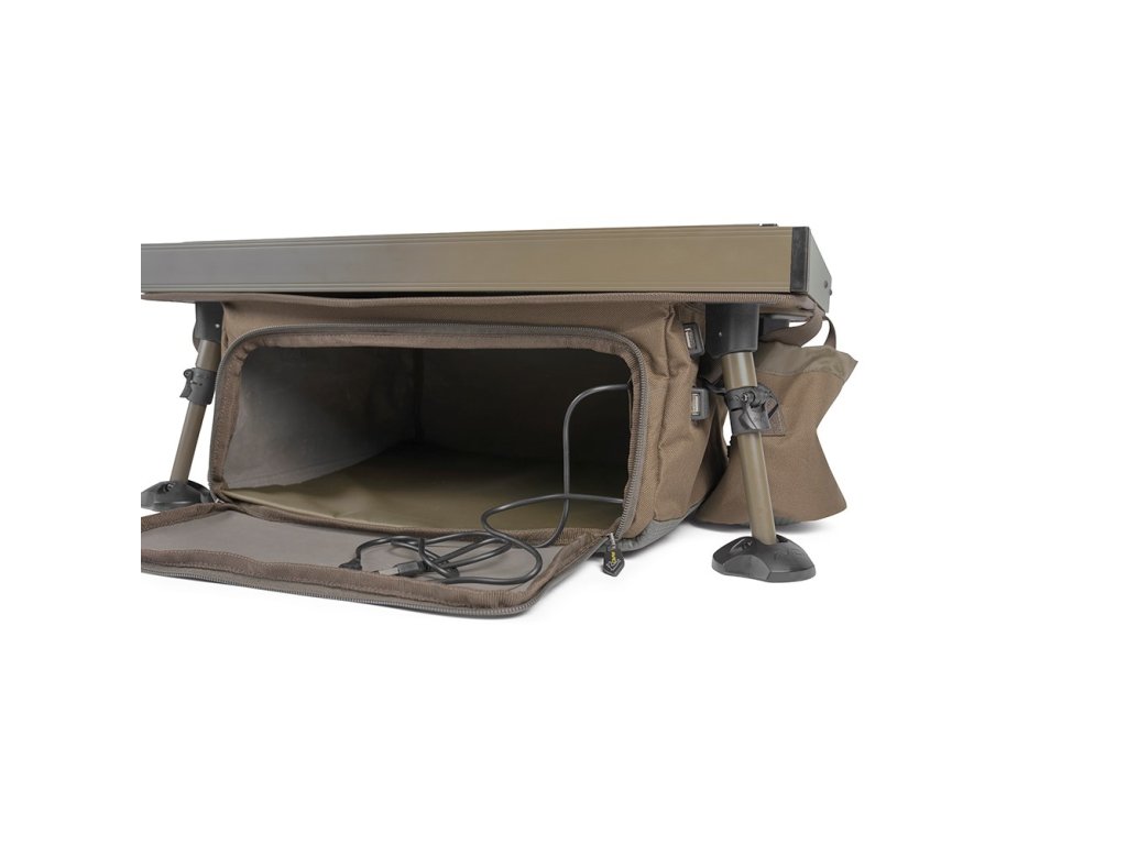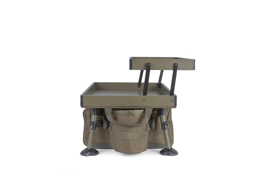 Organizér má plně nastavitelné LokDown nohy, což jej umožňuje postavit do ideální roviny i na svažitém břehu. Na horním patře je na zadním okraji integrovaný držák na tablet nebo mobilní telefon, který vám umožní sledovat tato zařízení v tom správném úhlu. Organizér je snadno složitelný do kompaktní velikosti, aby jej bylo jednoduché přepravovat na vozíku i v autě.