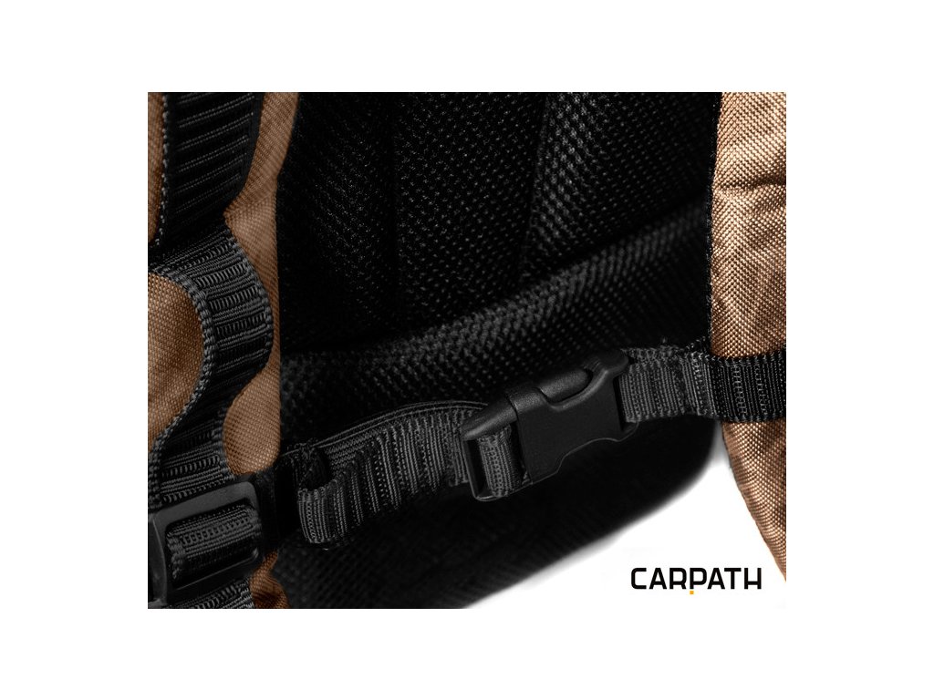 Mnozí z vás se musí přemístit na svůj hotspot pěšky i několik kilometrů. A přesně tento batoh vám to umožní. Co se týče komfortu nošení, tak má batoh polstrovanou zádovou část s logem Delphin, polstrované ramenní popruhy s hrudním popruhem a také má polstrovaný úchop na ruku z EVA pěny. Naprojektovaný byl s důrazem na praktičnost, trvanlivost a odolnost vůči nepříznivým povětrnostním vlivům. Taška je ze všech stran osazena 6mm polstrováním pro maximální ochranu vašeho příslušenství uvnitř. To přispívá k tomu, že batoh je mimořádně stabilní a drží si svůj tvar. Celá spodní část batohu je osazena vyztuženou, 5cm vysokou, nepromokavou vrstvou, která dovoluje položení batohu na mokrý povrch. To ještě více přispívá k tomu, že taška je také na spodní straně mimořádně stabilní a drží si svůj tvar. Na obou stranách se nacházejí dvě objemné kapsy. Vepředu se nachází jedna menší dvoukapsa. Batoh je vybaven kvalitními zipy. Vnější zipy jsou opatřeny plastovými taháčky. Design tašky doplňuje naše jedinečná hnědá CARPATH kamufláž se siluetami kaprů. Technické parametry: Batoh XL: Celkový rozměr včetně kapes ŠxVxH: 45x45x30cm Rozměr hlavní části batohu ŠxVxH: 25x45x25cm Rozměr přední kapsy ŠxVxH: 20x15x4cm Rozměr boční kapsy ŠxVxH: 20x38x7cm Batoh XXL: Celkový rozměr včetně kapes ŠxVxH: 50x55x35cm Rozměr hlavní části batohu ŠxVxH: 30x55x30cm Rozměr přední kapsy ŠxVxH: 30x20x5cm Rozměr boční kapsy ŠxVxH: 25x45x10cm Kamufláž CARPATH je unikátním a patentovaným designovým vzorem, který v sobě skloubil maskovací vizuál kamufláže a siluety kaprů, které tuto kamufláž tvoří. Tento jedinečný a neopakovatelný návrh pochází kompletně z dílny značky Delphin a posouvá hranice vašeho rybářského vybavení do zcela nové dimenze.