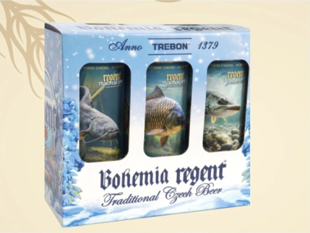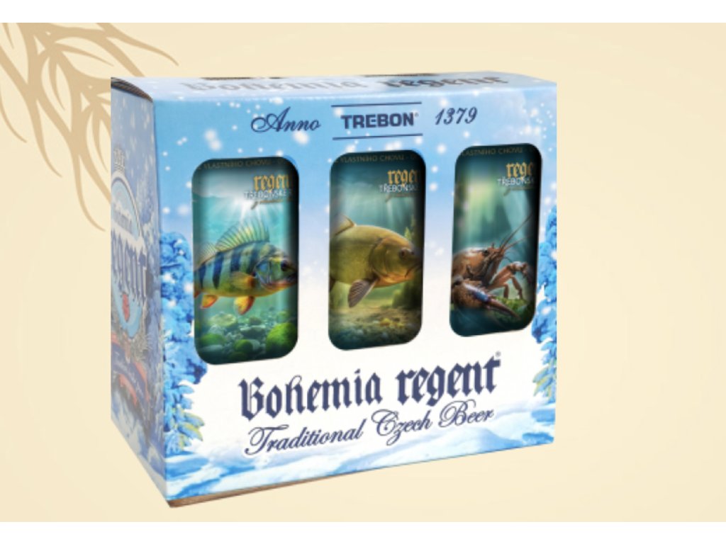 Každá plechovka okouzlí chuťí prémiového ležáku Regent premium alc. 5% obj. – vlajkové lodi pivovaru Bohemia Regent Třeboň – s okouzlujícím světem třeboňských ryb.