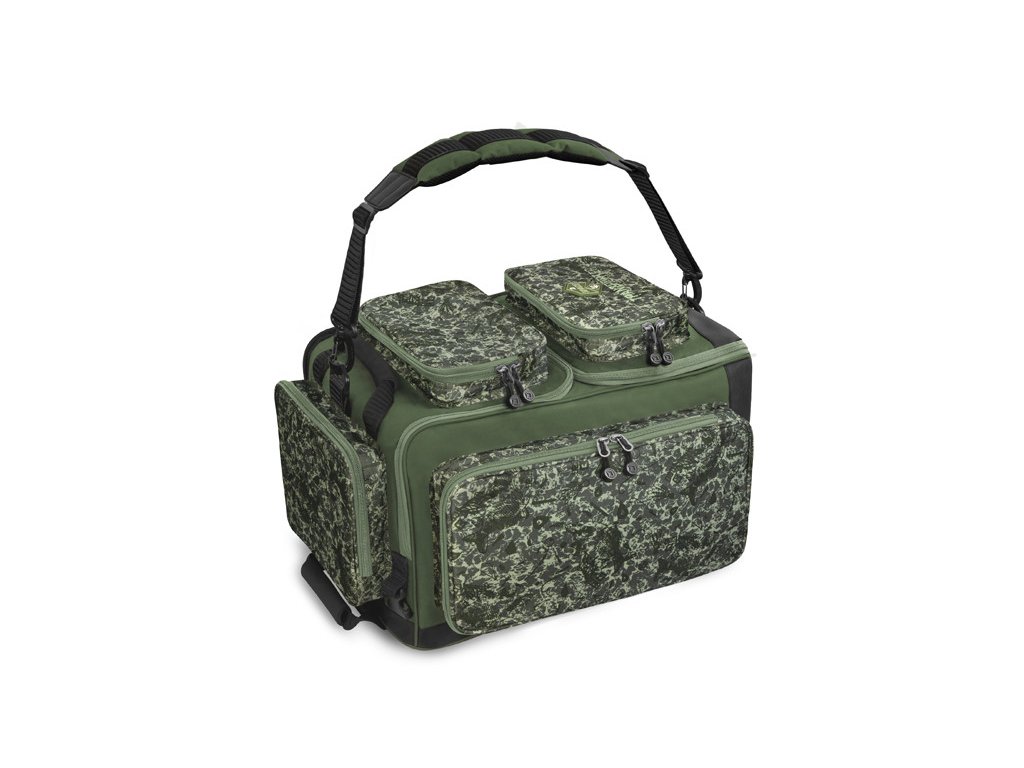Do nejmenších detailů propracovaný produkt, na kterém jsme si při vývoji dali opravdu záležet. Jeho objem 55 litrů umožňuje sbalit opravdu vše, co při svých expedicích potřebujete. Pokud svou výbavu potřebujete přenést na větší vzdálenosti, jednoduše ho díky ramenním popruhům použijete jako batoh, přičemž o pohodlí vašich zad se postará měkčená odnímatelná výztuha. Právě slovo odnímatelná je podstatné. Standardem u produktů 2v1 totiž bývá, že dosedací plocha zad batohu a dosedací plocha carryall tašky je stejná. To znamená 2 nevýhody. První je špína, kterou si po použití carryall tašky určitě nechcete dát na záda. Druhou je slabá ergonomie této společné plochy. My jsme to ale vyřešili. Hřbet je možné opatřit speciální vrstvou, která ochrání Vaše záda od nečistot a zároveň dopřeje pohodlí páteři. V případě potřeby tuto vrstvu odpojíte, spolu s ní i ramenní popruhy a na světě je najednou plnohodnotná taška přes rameno. Na její spodní části je vrstva snadno čistitelné PVC, která je 100% voděodolná, a tak ji můžete bez starostí položit kdekoli na zem. Další výhodou je úchyt opatřený EVA rukojetí, díky kterému je možné TRANSPORTER bez obtíží zasouvat a vytahovat z pod lehátka. Navzdory své velikosti vám tak v bivaku nezabere další místo navíc.