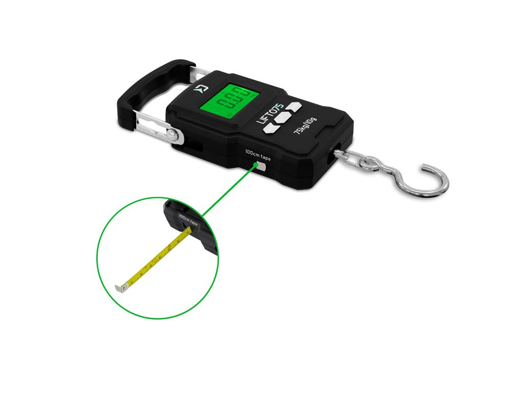 Tato nabíjecí digitální váha umožňuje měření hmotnosti v rozmezí od 10g až do 75kg s vysokou přesností. LIFTO má jednoduché ovládání pomocí tří tlačítek. Zapnutí, resp. vypnutí váhy probíhá zatlačením středního tlačítka s označením Power ON. Krátkými stisky tlačítka UNIT lze měnit jednotky hmotnosti (kg, lbs, JIN, oz), zobrazované na displeji. Čtvrtým stisknutím tlačítka UNIT přepnete váhu do formátu teploměru, který vám ukáže aktuální teplotu ve °C. Podsvícení displeje přes jasný den můžete vypnout 2 sekundovým podržením tlačítka UNIT, což přispívá k šetření baterie. Funkce TARE umožňuje vynulování zátěže na háku, což je vhodné pro vážení ryby bez zkreslujícího údaje vážící tašky.