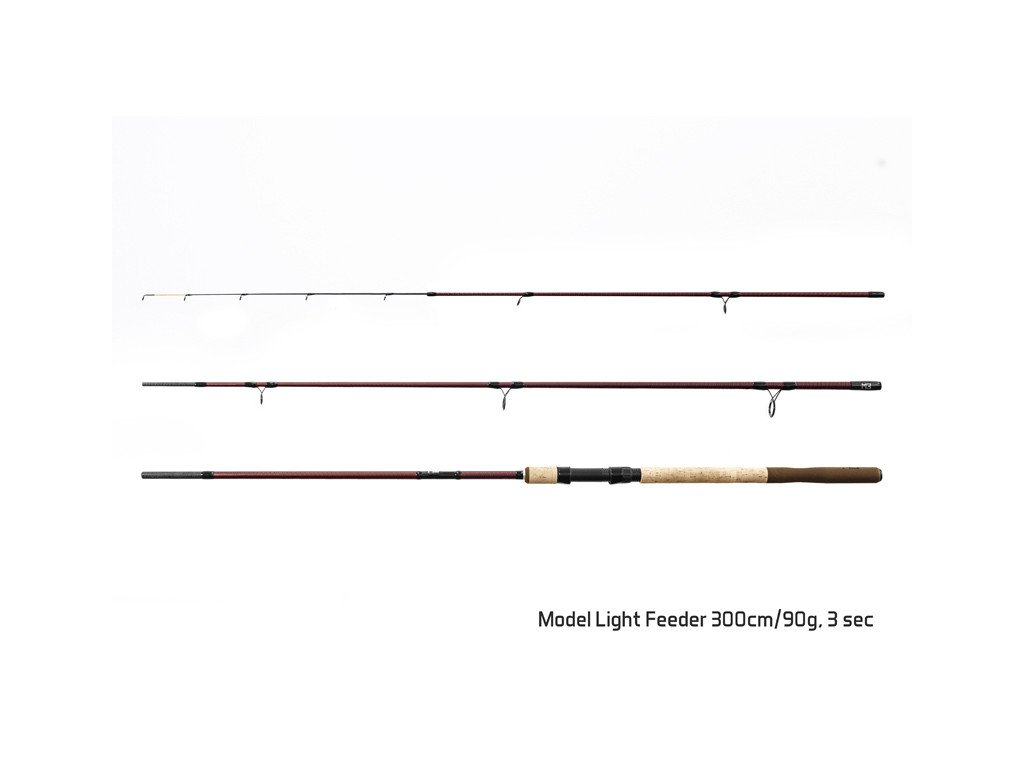 Právě to stálo za zrodem vývoje technologie Delphin 2Power. Tato technologie se skládá ze dvou podsegmentů, a to PowerWrap a PowerJoin. Oba segmenty jsou aplikovány na každém modelu série MAGMA M3. PowerWrap si všimnete okamžitě při kontaktu s prutem. Jedná se o dodatečné vinutí karbonu po celé délce prutu, kterým jsme dosáhli výrazného zvýšení pevnosti. Také zvyšuje odolnost vůči momentovému přetížení prutu. V praxi to znamená výrazně vyšší životnost prutu a snížení náchylnosti na mechanické poškození. Sekundárním aspektem tohoto vinutí je vizuálně velmi přitažlivý prvek strukturovaného blanku. PowerJoin není tak nápadným detailem jako wrap, je však neméně důležitým prvkem tohoto povedeného celku. Obnáší totiž malý kovový kroužek na konci každého spoje, což výrazně snižuje možnost tříštivého poškození blanku. Navzdory této zesilující kůře jsme zapracovali na štíhlosti blanků a tedy opět můžeme směle potvrdit, že patří jednoznačně mezi nejštíhlejší ve své třídě. Také si blanky zachovávají své nadprůměrně výborné vlastnosti z hlediska nahazování i zdolávání s parabolickou akcí. Blanky jsou osazeny kvalitními odlehčenými SiC očky, které skvěle vedou vlasec. Rukojeť je pokryta korkem, na který příjemně navazuje profilovaná hnědá EVA pěna, jejímž úkolem je nahradit korek na těch nejvíce exponovaných místech. Ukončena je elegantní hliníkovou koncovkou. Tato rukojeť dokonale padne do ruky a ještě zvyšuje komfort z používání daných prutů. Prut je osazen odlehčenými SiC očky vysoké kvality. Ty dokonale rozdělují sílu po celé délce blanku a spolehlivě vedou vlasec při náhozech nebo zdolávání ryb. Pruty jsou dodávány s pěti druhy špiček různé tvrdosti. Technické parametry: Model Light feeder 300cm / 90g Akce: C Počet dílů: 3 Průměr blanku nad rukojetí: 9,84mm Počet oček: 10 Transportní délka: 105cm Hmotnost: 184g Rukojeť: Korek a EVA pěna Délka rukojeti (od spodní části prutu po střed sedla): 43,5cm Model Light feeder 330cm / 90g Počet dílů: 3 Průměr blanku nad rukojetí: 11,78mm Počet oček: 11 Transportní délka: 115cm Hmotnost: 206g Rukojeť: Korek a EVA pěna Délka rukojeti (od spodní části prutu po střed sedla): 45,5cm Model Light feeder 360cm / 90g Počet dílů: 3 Průměr blanku nad rukojetí: 12,87mm Počet oček: 12 Transportní délka: 126cm Hmotnost: 226g Rukojeť: Korek a EVA pěna Délka rukojeti (od spodní části prutu po střed sedla): 47,5cm Model Medium feeder 360cm / 120g Počet dílů: 3 Průměr blanku nad rukojetí: 13,20mm Počet oček: 12 Transportní délka: 125cm Hmotnost: 238g Rukojeť: Korek a EVA pěna Délka rukojeti (od spodní části prutu po střed sedla): 47,5cm Model Heavy feeder 360cm / 150g Počet dílů: 3 Průměr blanku nad rukojetí: 13,61mm Počet oček: 12 Transportní délka: 125cm Hmotnost: 258g Rukojeť: Korek a EVA pěna Délka rukojeti (od spodní části prutu po střed sedla): 47,5cm Model Heavy feeder 390cm / 150g Počet dílů: 3 Průměr blanku nad rukojetí: 14,21mm Počet oček: 14 Transportní délka: 136cm Hmotnost: 286g Rukojeť: Korek a EVA pěna Délka rukojeti (od spodní části prutu po střed sedla): 49,5cm