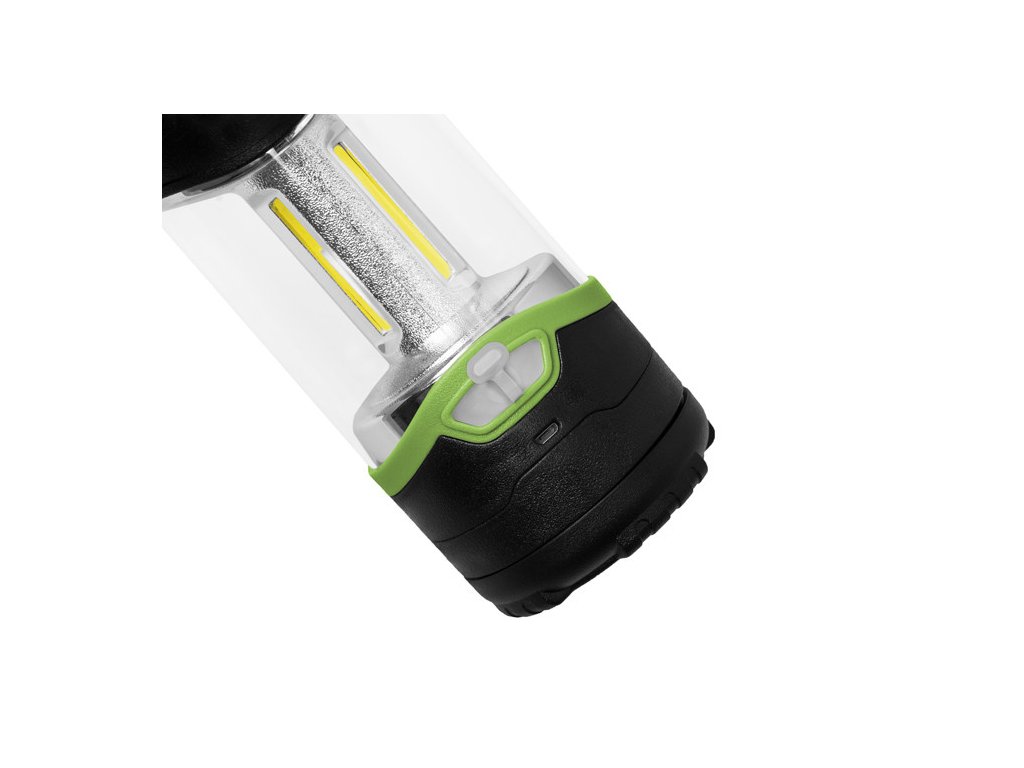 Baterii lze dobíjet přiloženým USB kabelem. Kempinkovou lampu je možné postavit na pevný podklad, nebo zavěsit na kovové očko, které se nachází v horní části. Dobíjecí konektor je chráněn gumovou krytkou. Technické parametry: Rozměry: 170mmx80mm Režimy: 2 režimy svícení bílým světlem (50% -4,5h, 100% -2,5h), 2 režimy červeného světla (stálé svícení a blikání - 20h) Napájení: Li-Ion vyměnitelný akumulátor typ 18650, 1200mAh (součástí balení) Výkon: 5W Světelný výkon: 220lm Nabíjení: USB (pomocí přiloženého kabelu)