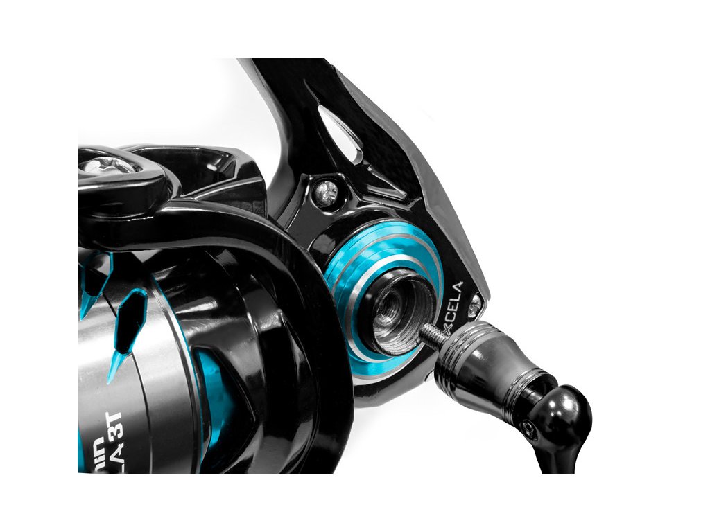 Kuličková ložiska v počtu 6+1 zajišťují velmi lehký a tichý chod, což je klíčový parametr každého kvalitního navijáku. Spolehlivý mechanismus s ideálním převodovým poměrem 5.1:1 umožňuje důkladné ukládání vlasce na kovovou cívku. Právě cívka zaujme už při prvním kontaktu výřezy připomínajícími drápky. Klika navijáku IXCELA se k tělu upevňuje našroubováním do vnitřní matice, čímž je minimalizována její vůle a upevnění je tak velmi spolehlivé. Samotné madlo kliky má pogumovaný povrch a na dotek je velmi příjemné a pohodlné. Kromě toho efektně dotváří naviják po estetické stránce.