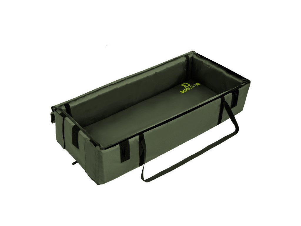 Název DuoMAT znamená, že podložku lze použít dvěma způsoby. Jako standardní podložku bez okrajů, nebo si můžeme tyto okraje zvednout a zafixovat je pomocí suchých zipů, které se nacházejí v každém z rohů. Při vypouštění ryby lze odepnout jen jeden z okrajů, čímž ryba snadno vyklouzne do vody. Podložka disponuje dvěma gumovými popruhy, které jsou určeny k upevnění během transportu. Oproti základnímu Duomatu tento obsahuje navíc pevné textilní rukojeti, se kterými je možné samotnou podložku, ale také úlovek v ní pohodlně přenášet.