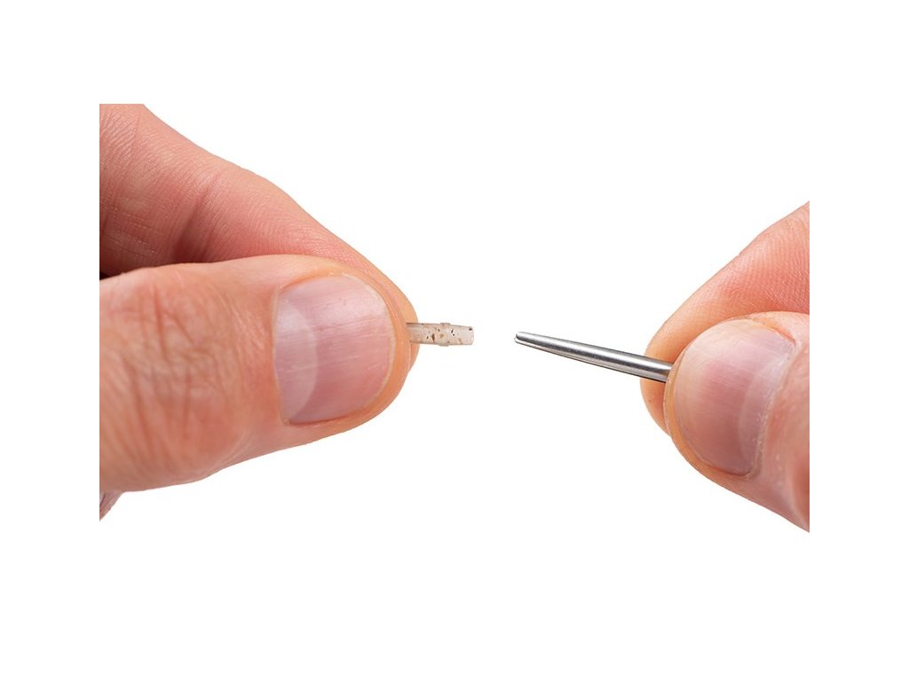 Hadička se zasune do navlékače, následně lze silikonovou hadičku, návlek nebo korálek snadno stáhnout z navlékače přímo na hadičku – bez zbytečné námahy a poškození materiálu.