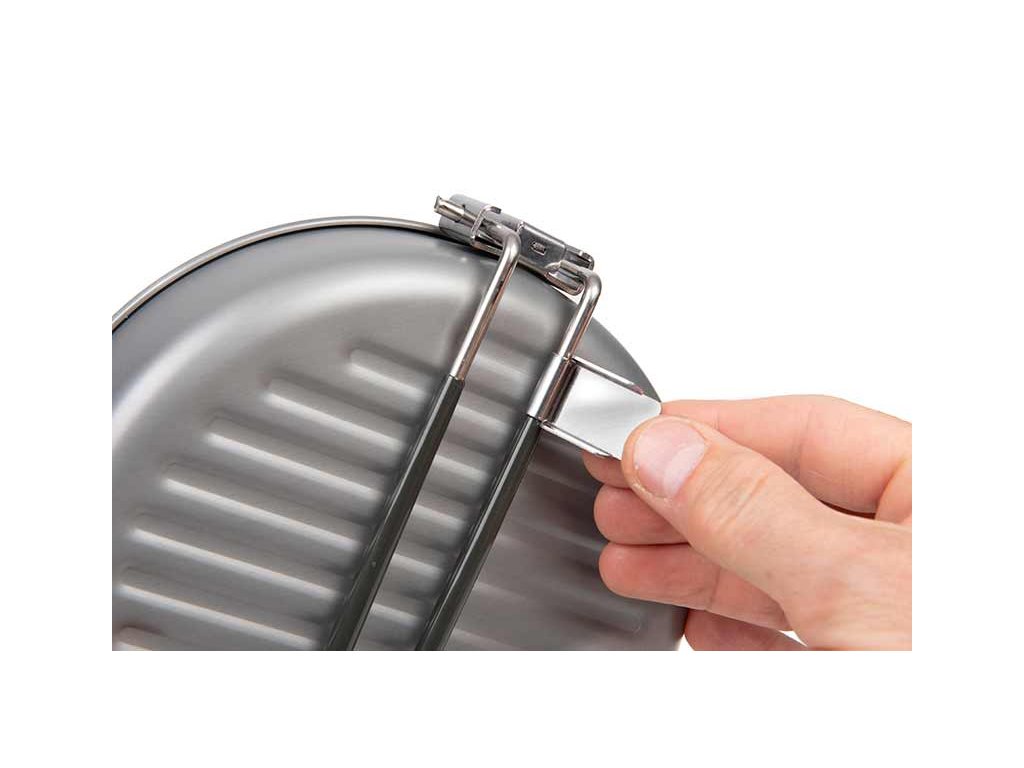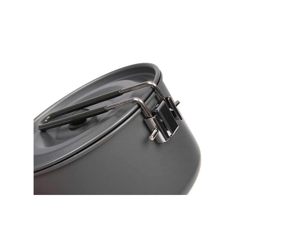 Obsahuje 0,9l konvici Heat Transfer, střední hrnec obsažený 3 dílné sadě a dále velkou pánev a velký hrnec, ideální pro ty rybáře kteří si rádi připravuji skutečné hostiny. Stěny hrnců a pánve jsou zesílené s kvalitnější nepřilnavou povrchovou úpravou.