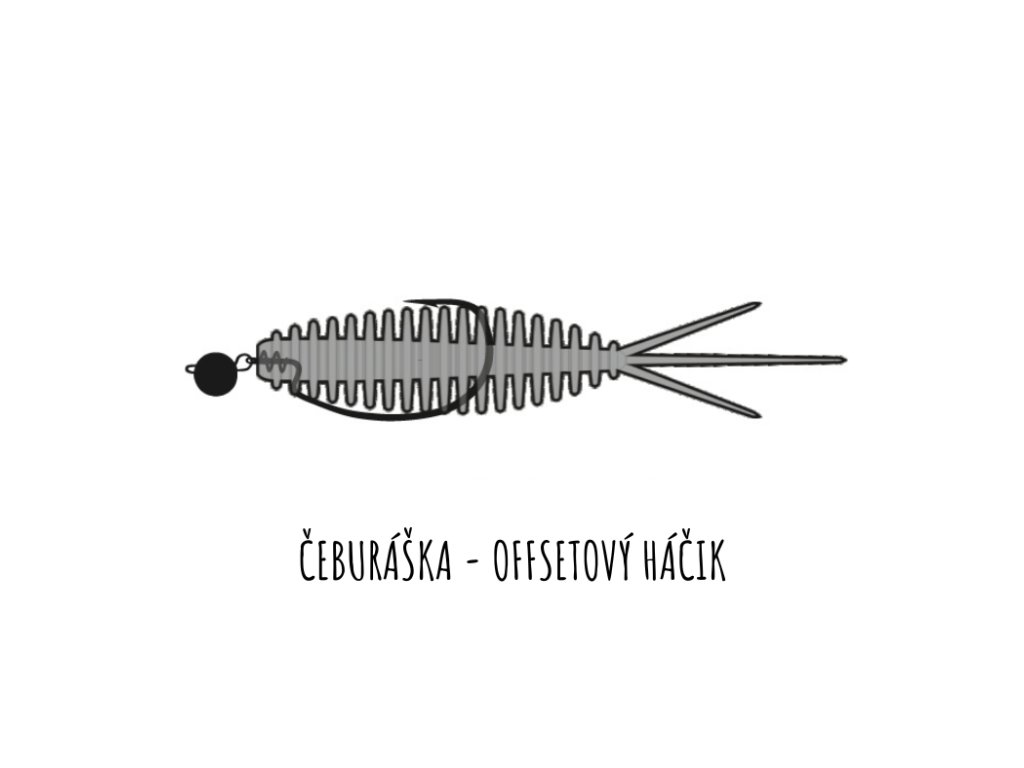 Tenká konstrukce a volný prostor mezi kroužky zajišťují jeho maximální pohyblivost. Náš unikátní materiál mu zároveň dodává vysokou odolnost. Nástraha je tak schopna odolávat i opakovaným útokům dravců, aniž by došlo k jejímu poškození. Tělo je na konci vybaveno třemi nožičkami, které nástrahu ještě více zatraktivňují.