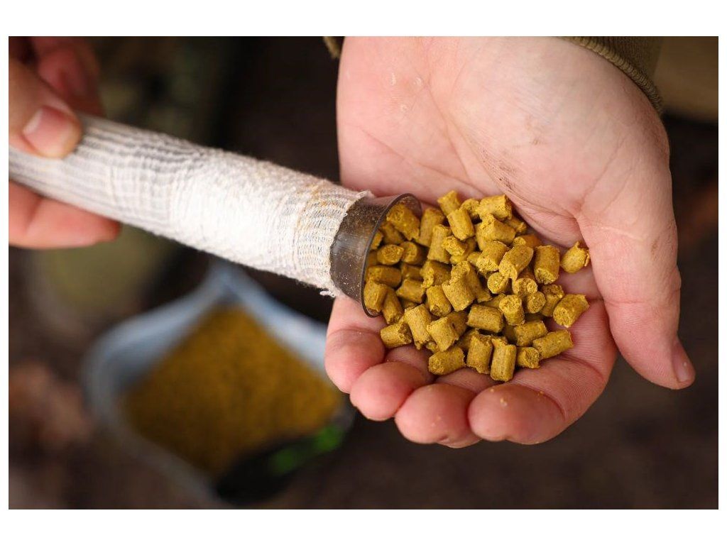 Po vhození do vody pelety vytvářejí hutný zakalený mrak, který se rychle šíří vodním sloupcem a přitahuje pozornost ryb z větší vzdálenosti. Drobné kukuřičné částečky postupně klesají ke dnu a stimulují přirozený zájem o potravu, protože kapři kukuřici velmi dobře znají a vyhledávají ji. Tento vizuální i chuťový signál je mimořádně účinný při lovu kaprů i dalších druhů reagujících na silné zakalení.