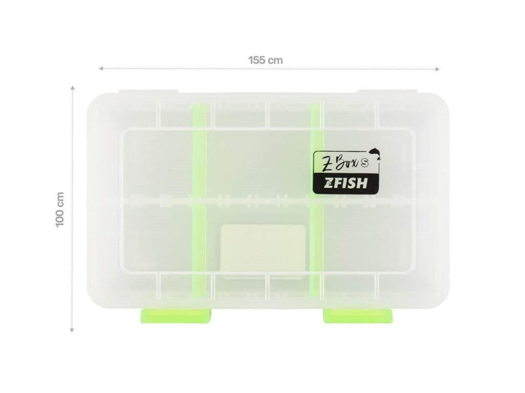 - Klasický, univerzální tackle box/organizér z čirého materiálu