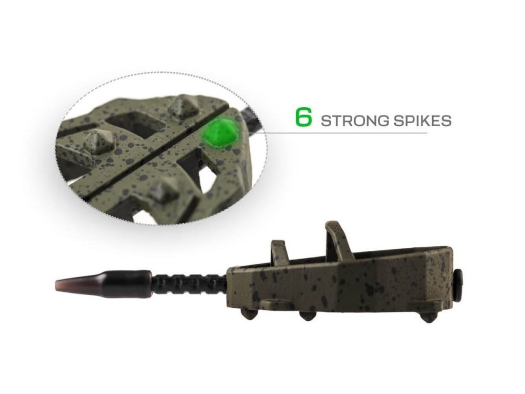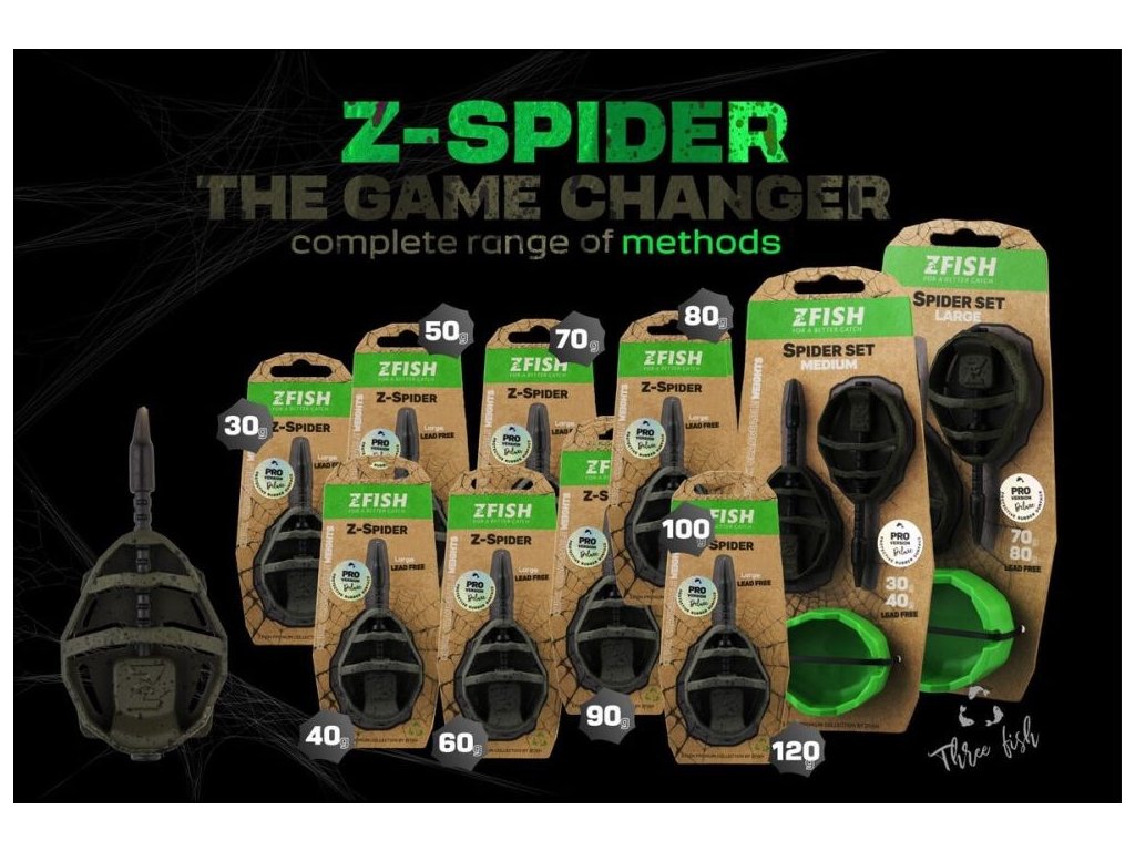 Na jejich vývoji se podílel tým zkušených specialistů značky ZFISH, díky čemuž vzniklo krmítko, které splňuje i ta nejvyšší očekávání moderního rybáře. Tvar Spidera zaručuje dokonalé vyvážení při nahazování a jisté dosednutí ke dnu vždy tou správnou stranou. Nově navržený nosný rám zajišťuje optimální uvolňování krmné směsi a zároveň chrání nástrahu během náhozu. Součástí konstrukce je speciální ploška pro přesné umístění nástrahy s háčkem, která zajistí, že vaše nástraha bude vždy v ideální pozici. Krmítka Spider umožňují rychlou výměnu zátěže díky vyjímatelné trubičce a otvoru na zadní straně. Stačí vysunout trubičku, uvolnit vlasec a vyměnit zátěž za jinou – bez nutnosti převazování celé sestavy. Krmítka jsou vyrobena z bezolovnatého materiálu v matně zeleném provedení s černými tečkami, které dokonale splyne s dnem a minimalizuje plašení ryb.